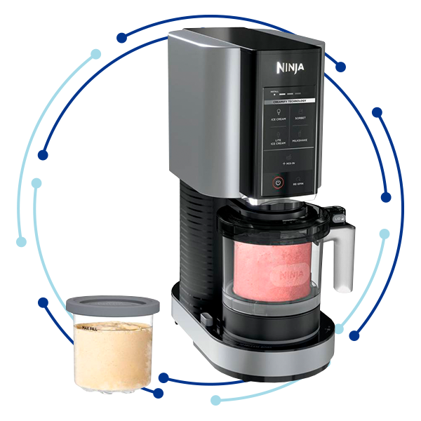 Sorprende a tu familia con esta práctica máquina para hacer helado de la marca Ninja, llévala a casa y prepara deliciosos helados con su guía de inspiración de recetas, que viene incluida.